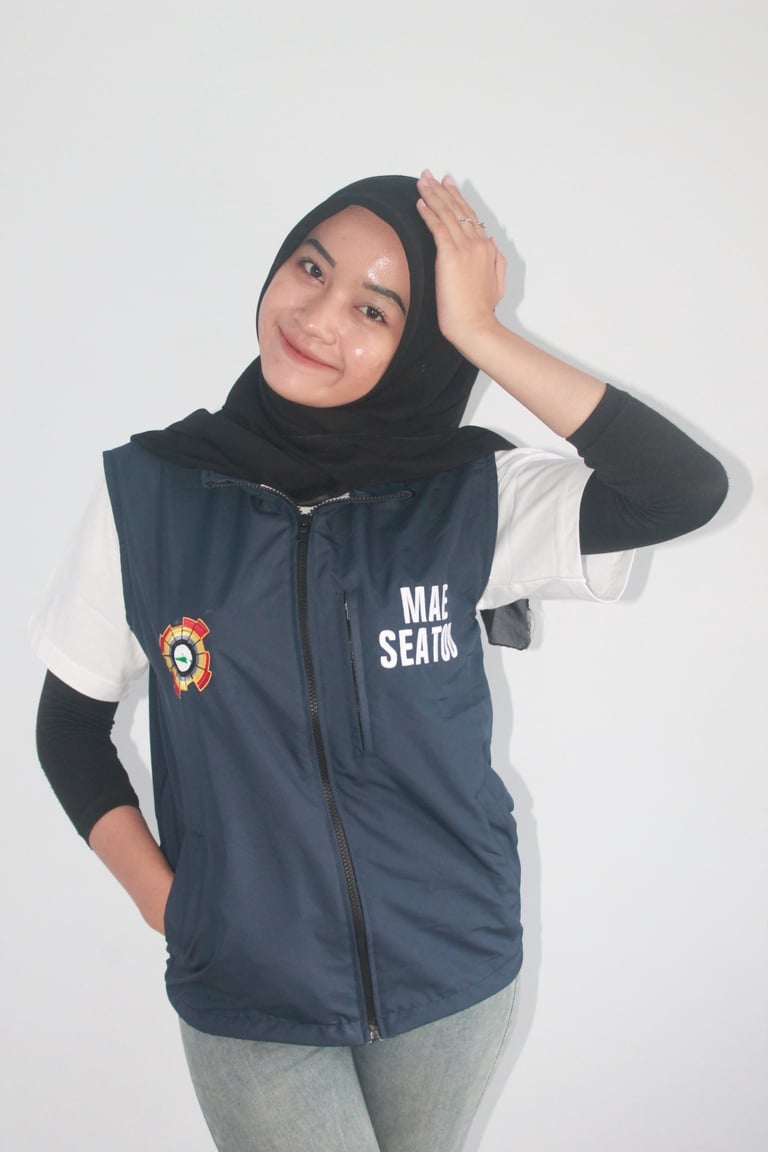 Biasanya dikenakan oleh relawan yang membantu jalannya acara, seperti registrasi, usher, atau pendamping tamu. Desain rompi volunteer bisa lebih simpel, dengan warna ceria dan mencerminkan semangat kerja tim.